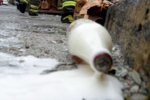 Decenas de personas se llevaron cartones de cerveza tras la volcadura de un tráiler de doble remolque en el kilómetro 3+300 de la Carretera...