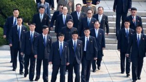 Cuando está en Corea del Norte, Kim Jong-un se protege con un grupo de guardaespaldas vestidos de traje negro, conformado...