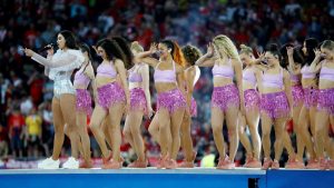 La joven sensación del pop subió al escenario como parte del número musical previo al enfrentamiento de Liverpool contra el...
