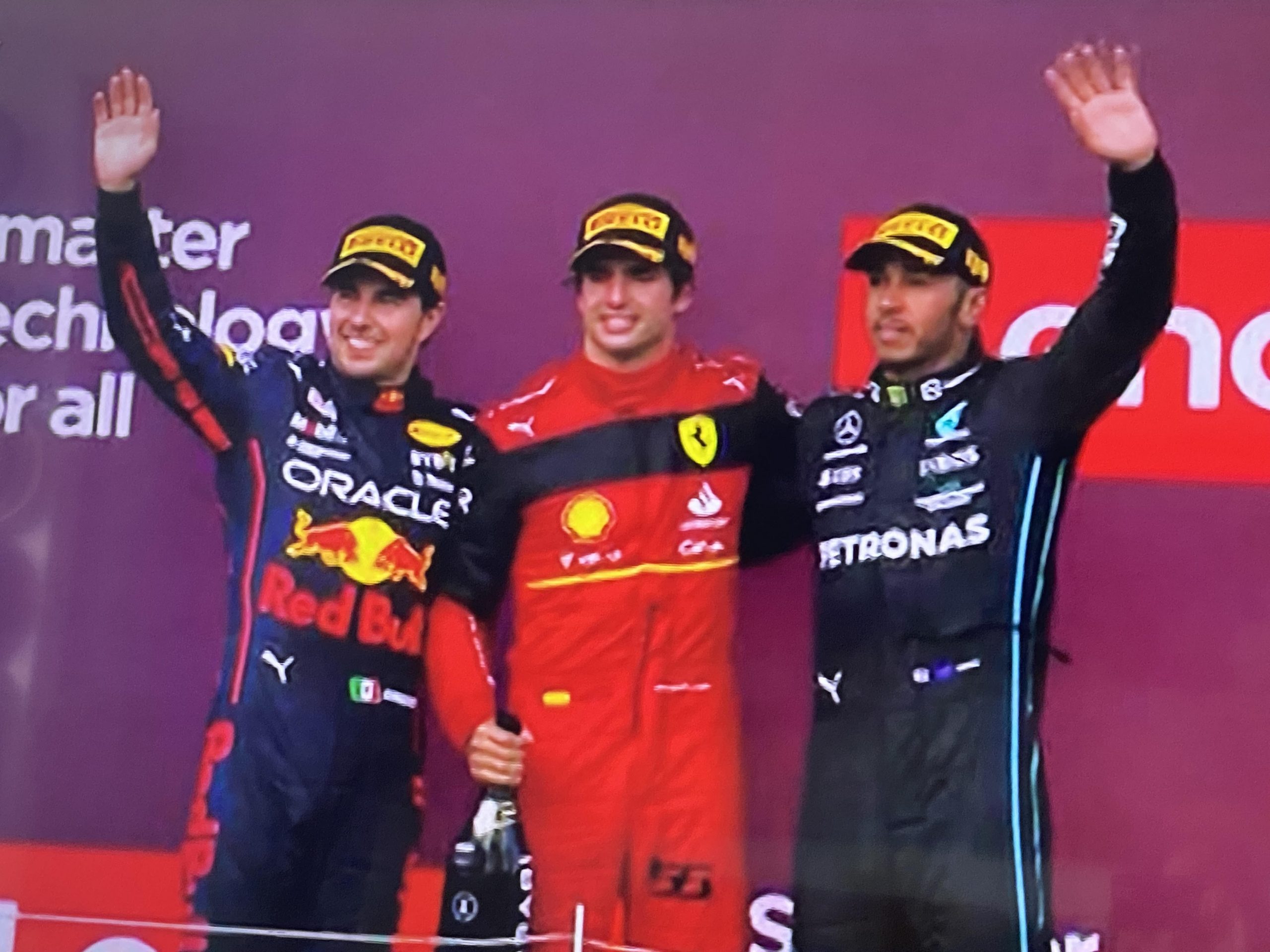 Desde el inicio de la carrera, se vivió intensamente, con un accidente impresionante que dejó a 3 competidores de los 20 fuera de la competencia. Checo peleaba por el cuarto lugar, pero nuevamente un accidente, le deja imperfecciones en la parte frontal del auto y tiene que entrar a Pits a reparación, para reanudar, en el ultimo lugar de la competencia, pero a partir de ese momento, su actitud y capacidad empezó a imponerse poco a poco, para llegar a recuperar lugares, ubicándose en el cuarto sitio cuando un nuevo accidente hace aparecer el safety car, lo cual le beneficia y sabe sacar ventaja, entrando a pits para cambio de neumáticos y al reanudarse la carrera, con decisión, jugándose el todo por el todo. Se fue contra Hamilton y Leclerc, propiciando quizá la parte mas excitante de la temporada, donde finalmente se impuso y llegó en segundo lugar. Le faltó un poco de tiempo para pelear el primer lugar, pero lo que hizo hoy es simplemente una hazaña, habiendo reiniciado en la ultima posición y llegar hasta el podio en segundo lugar.