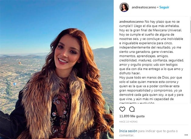 Rebeca de Alba fue la encargada de dar a conocer el triunfo de Andrea en Mexicana Universal, quien con diferencia de un voto, ganó a Aranza, representante de Tabasco, el tercer puesto se lo llevó Maryeli Leal del estado de Sinaloa, el cuarto Lupita Valero, representante de Guerrero, el quinto Neiba Torres de Jalisco y el sexto Karely Sandoval de Zacatecas.