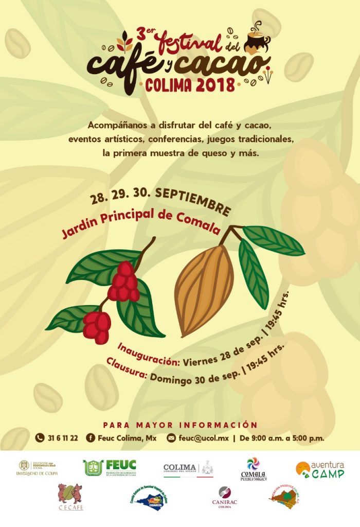 En conjunto del secretario de Turismo del estado de Colima, Efraín Angulo Rodríguez, dieron a conocer que este 3er Festival de café y cacao, se llevará a cabo en las fechas del 28, 29 y 30 de septiembre en el jardín principal de Comala, y que durante el festival se podrán apreciar más de 32 estand con diferente productos de café y cacao provenientes de los productores locales.