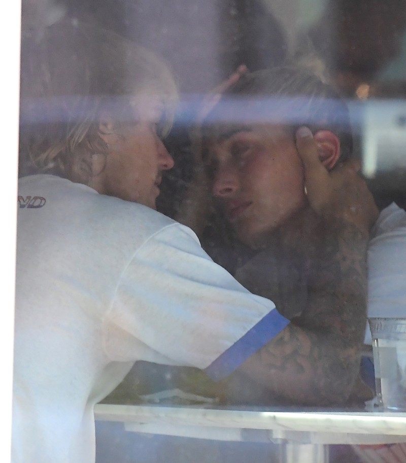Más tarde la pareja se dirigió a un restaurante del barrio Tribeca, donde las conmovedoras escenas continuaron. Sin percatarse de la presencia de paparazzi, ahora era Justin quien consolaba cariñosamente a su futura esposa dentro del local.
