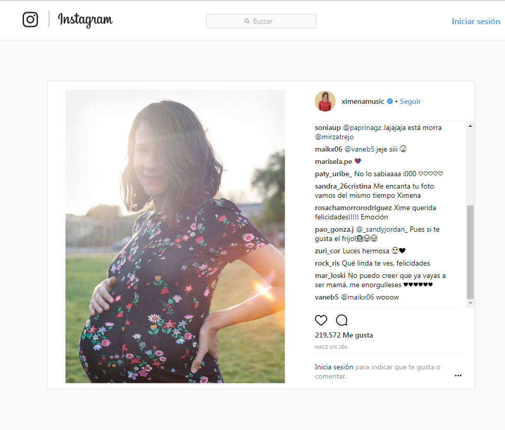 Dando la bienvenida a la primavera, la cantante publicó en su cuenta una postal que muestra su pancita de embarazada, con un vestido floreado y en un paisaje dónde los rayos del sol contrastan con su silueta, se muestra feliz con su embarazo y con el inicio de la primavera. La imagen logró 219,752 “me gusta” y cientos de comentarios de sus fans deseándole lo mejor para su nueva etapa como madre.