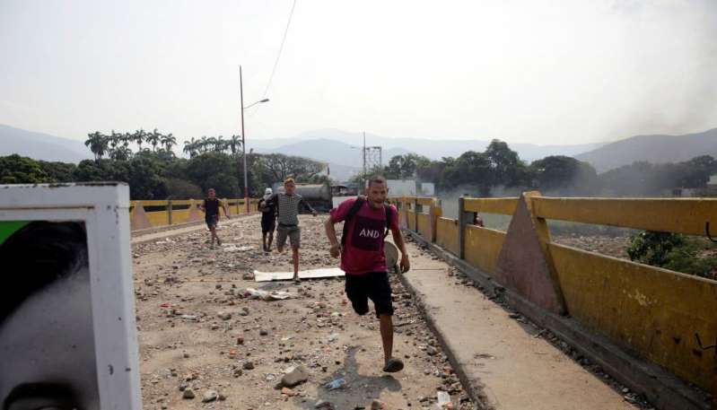 Lo cierto es que la postal de una cadena humana que hiciera ingresar el sábado en Venezuela las ayudas solicitadas por Juan Guaidó nunca llegó. La «avalancha humanitaria» se estrelló con las armas y los gases lacrimógenos de los militares leales al chavismo y los grupos que aún respaldan a Nicolás Maduro. En el puente Simón Bolívar, el principal cruce fronterizo entre los dos países, el escenario se descompuso a lo largo del sábado hasta tornarse sangriento.