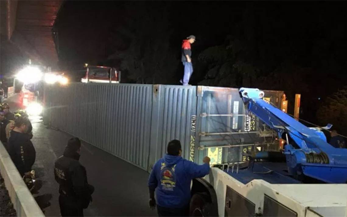 Servicios de emergencia atienden la volcadura de tráiler en el kilómetro 24 de la autopista México-Cuernavaca, con dirección a la capital morelense, en la colonia San Miguel Topilejo, alcaldía Tlalpan, por lo que hay un cierre parcial a la circulación.