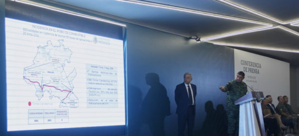 El secretario de la Defensa Nacional, Luis Cresencio Sandoval González, informó que el Ejército Mexicano tiene identificadas en Hidalgo siete bandas dedicadas al robo de combustible y 45 poblaciones vinculadas a este delito.
