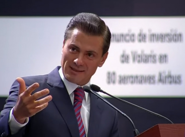 Al encabezar el anuncio de la empresa Volaris, que invertirá más de nueve mil 300 millones de dólares en 80 aeronaves de Airbus, el presidente dijo que en los últimos cinco años la tasa de crecimiento en el transporte de pasajeros de casi 10 por ciento anual gracias al dinamismo de la economía, la recuperación en el poder adquisitivo de los trabajadores y al aumento en la cifra de empleos.