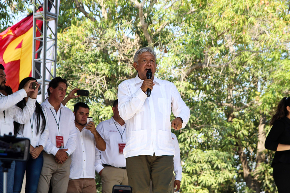 Colima, Manzanillo. El candidato de la coalición «Juntos Haremos Historia» Andrés Manuel López Obrador, se reunió con simpatizantes en el municipio de Manzanillo. El abanderado de Morena, solicitó el “voto parejo” para los candidatos que forman parte del Movimiento de Regeneración Nacional en donde se incluyen a los partido del Trabajo y Encuentro Social.